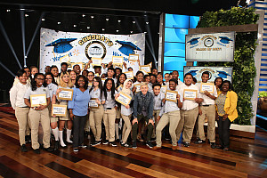 But Phillips was shocked when he learned on-air that Ellen DeGeneres and Walmart had teamed up to offer all 42 students of the senior class full, four-year scholarships to the New York state college of their choice.