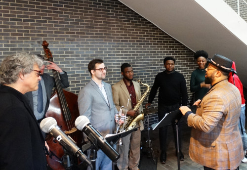 Poetry in Sound, a combo comprised of Jazz students from the Conservatory of Music, composed pieces based on the poetry of Kevin Young and performed them as Young recited the poems.