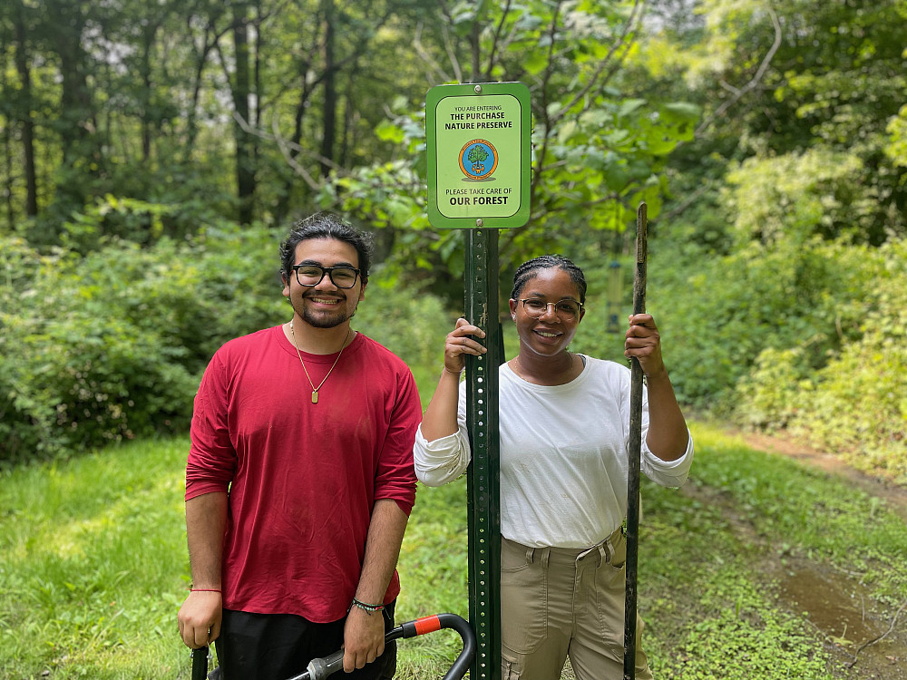 Students on the Sustainability Team partnered with seniors enrolled in Community Design last spring to create original, eye-catching signs, maps, and stickers promoting the Purchase Nature Preserve.