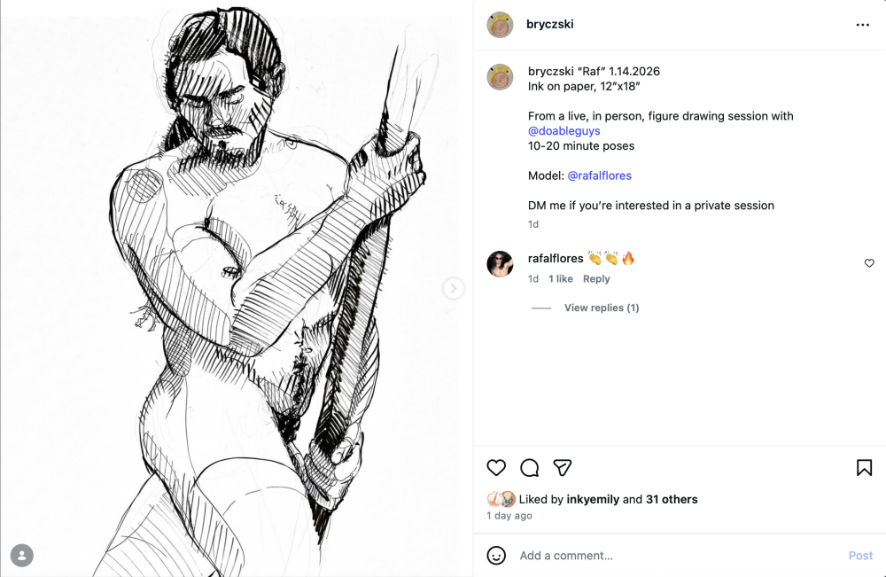 After 10 years on film sets, Czerniawski has returned to figure drawing with a group in New York City called Doable Guys. “An unfortunate name,” he admits, but they’ve been incredibly encouraging following his hiatus from the practice since Purchase. They also host art sales in and around NYC, a welcome opportunity where he’s had luck selling original drawings and prints on cork, totes, and hankies he made in the printshop. Hoping to devote more time to his own art and less time on sets, he was thrilled when his art sales matched his day rate in costumes—on the nose his first try, then tripled the next.