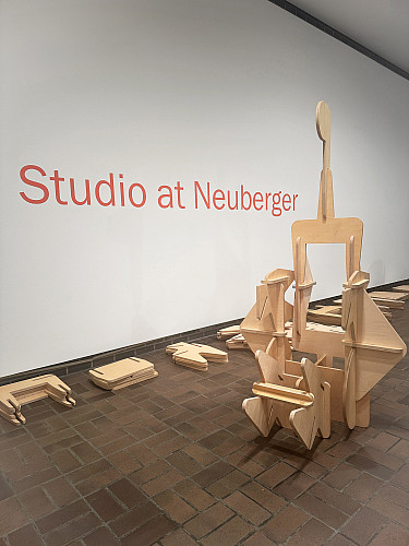 Last week, I mentioned our new exhibition, Studio at Neuberger, featuring the modular plywood works of Tobias Putrih. The very first visitor to build something was a child who created a spaceship. He proudly showed our team its laser cannons, thrusters, and antennae. It was a perfect inaugural construction!
