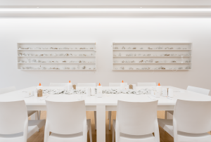 Listen in as Yoshimoto describes the journey from Ono’s first installation in the basement of a book shop in London to the current iteration of Mond Piece, set in a seemingly simple white room where shattered cups and saucers are placed on a table. In this space, participants are asked to bind the fragments together using common household items: twine, glue, scissors, and tape. The resulting creations are displayed on nearby shelves, evidence of the power of collective action.