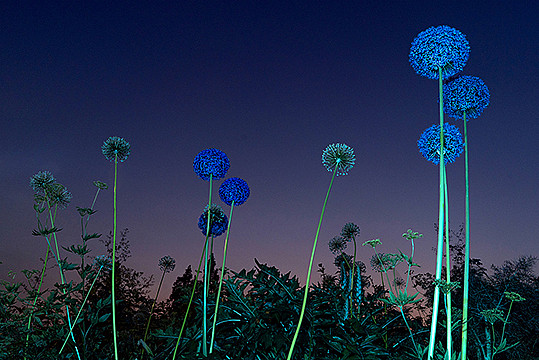 Paula Kelly captures nocturnal landscapes and botanical subjects illuminated by dramatic, saturated light. Working at night, she explores the interplay of color, shadow, and perspective, transforming familiar forms into luminous, otherworldly scenes that feel immersive and quietly cinematic.